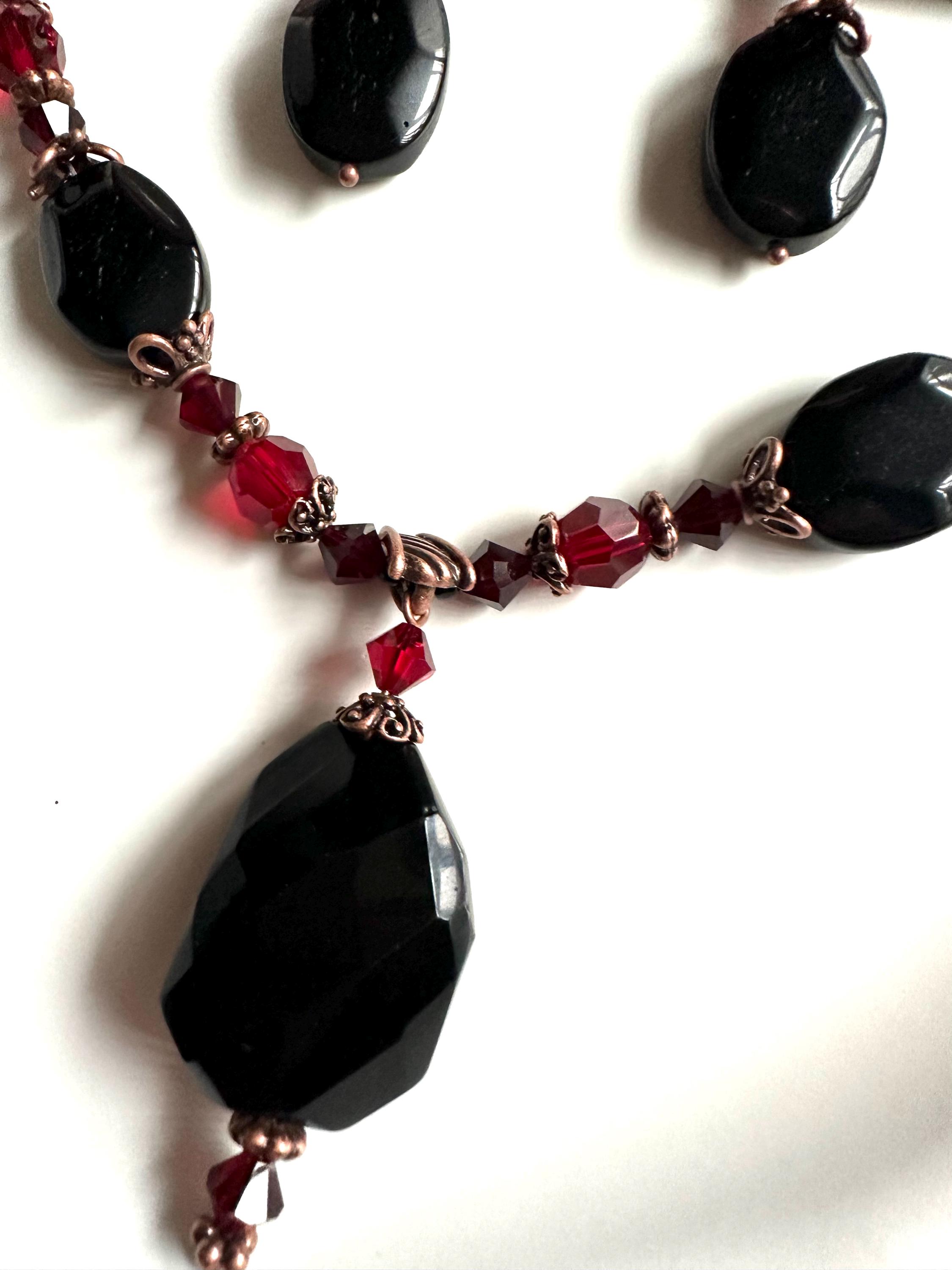 BLACK ONYX set. Necklace and earrings set. Natural gemstone. Vintage style. Strength. Protection. Resilience. Spirituality. Unique set.