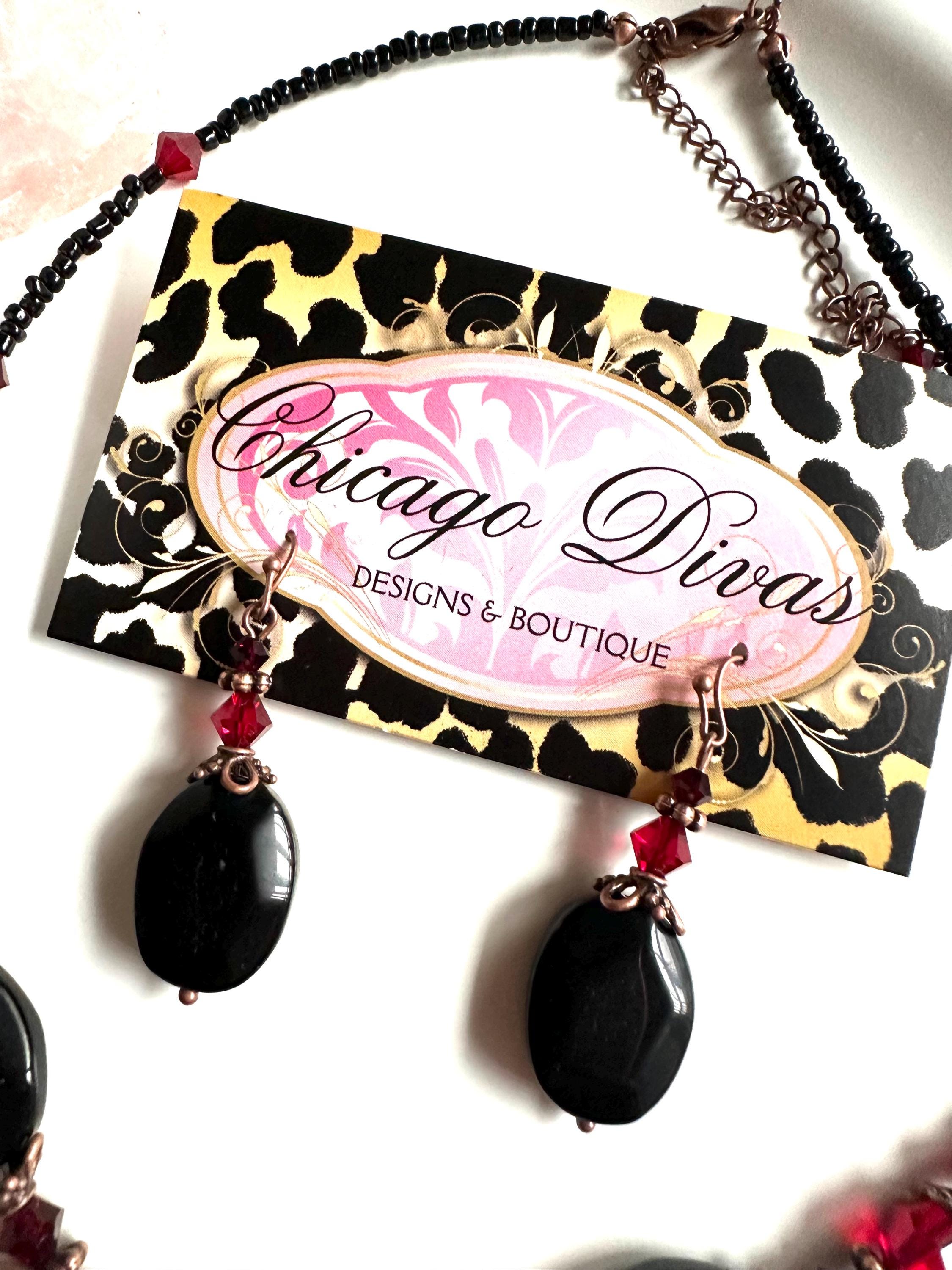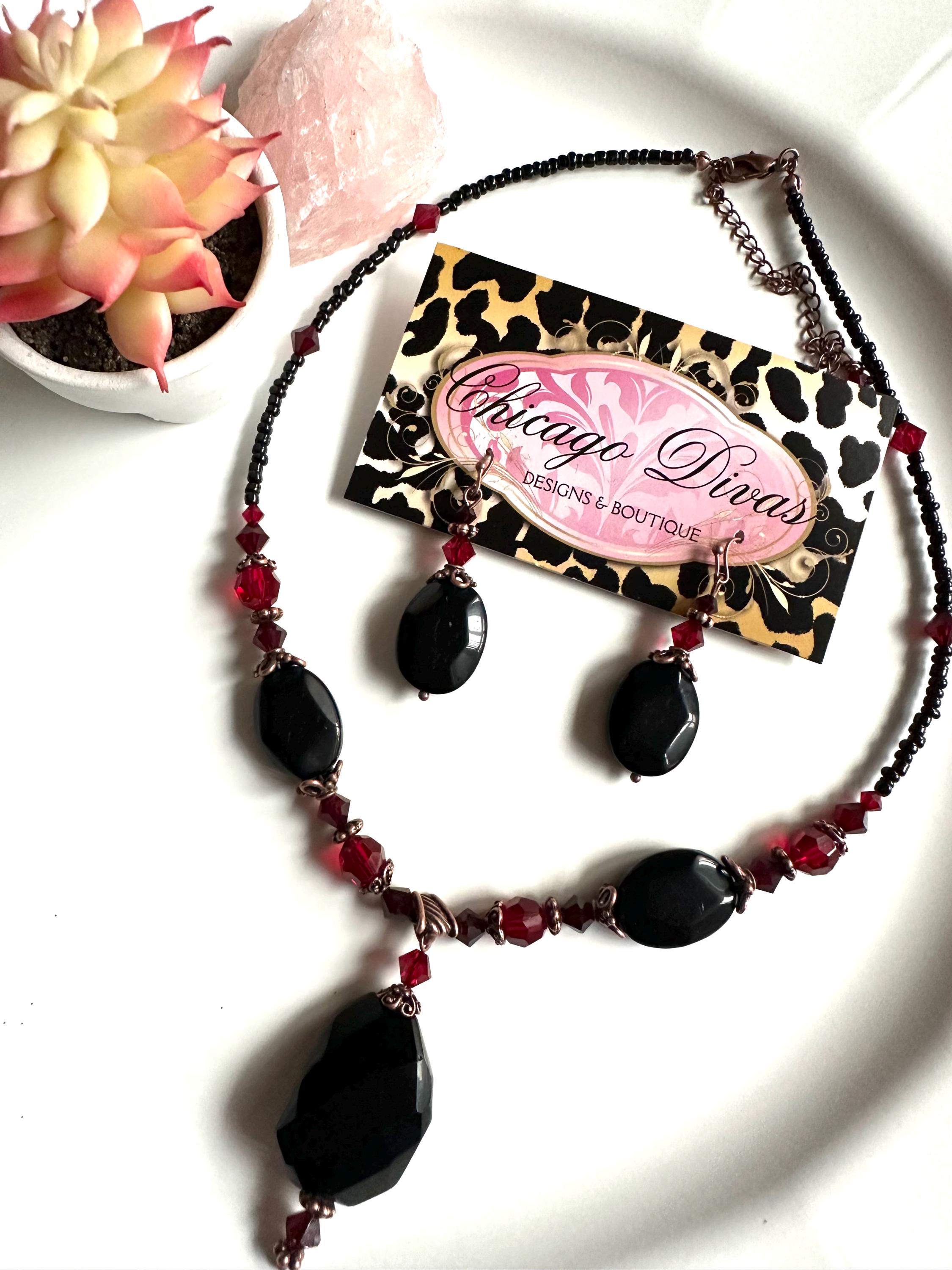 ⭐️💫✨ BLACK ONYX set. Necklace and earrings set. Natural gemstone. Vintage style. Strength. Protection. Resilience. Spirituality. New beginnings ⭐️💫✨ Unique set. ⭐️💫✨ you will receive exactly the two items in the picture earrings and necklace. Carefully crafted. Handmade with love and intention. ⭐️✨💫 shipping USA 🇺🇸 only.