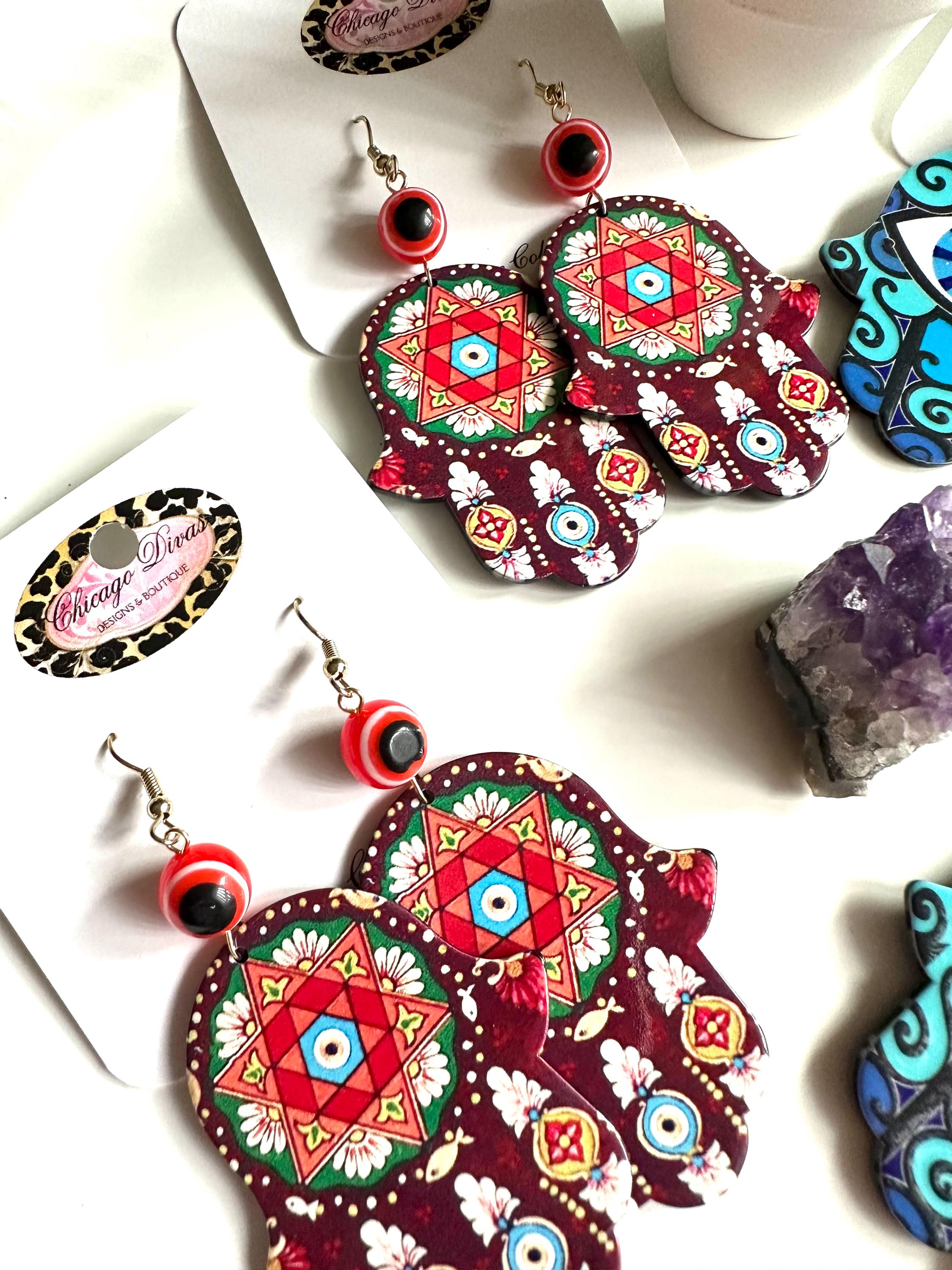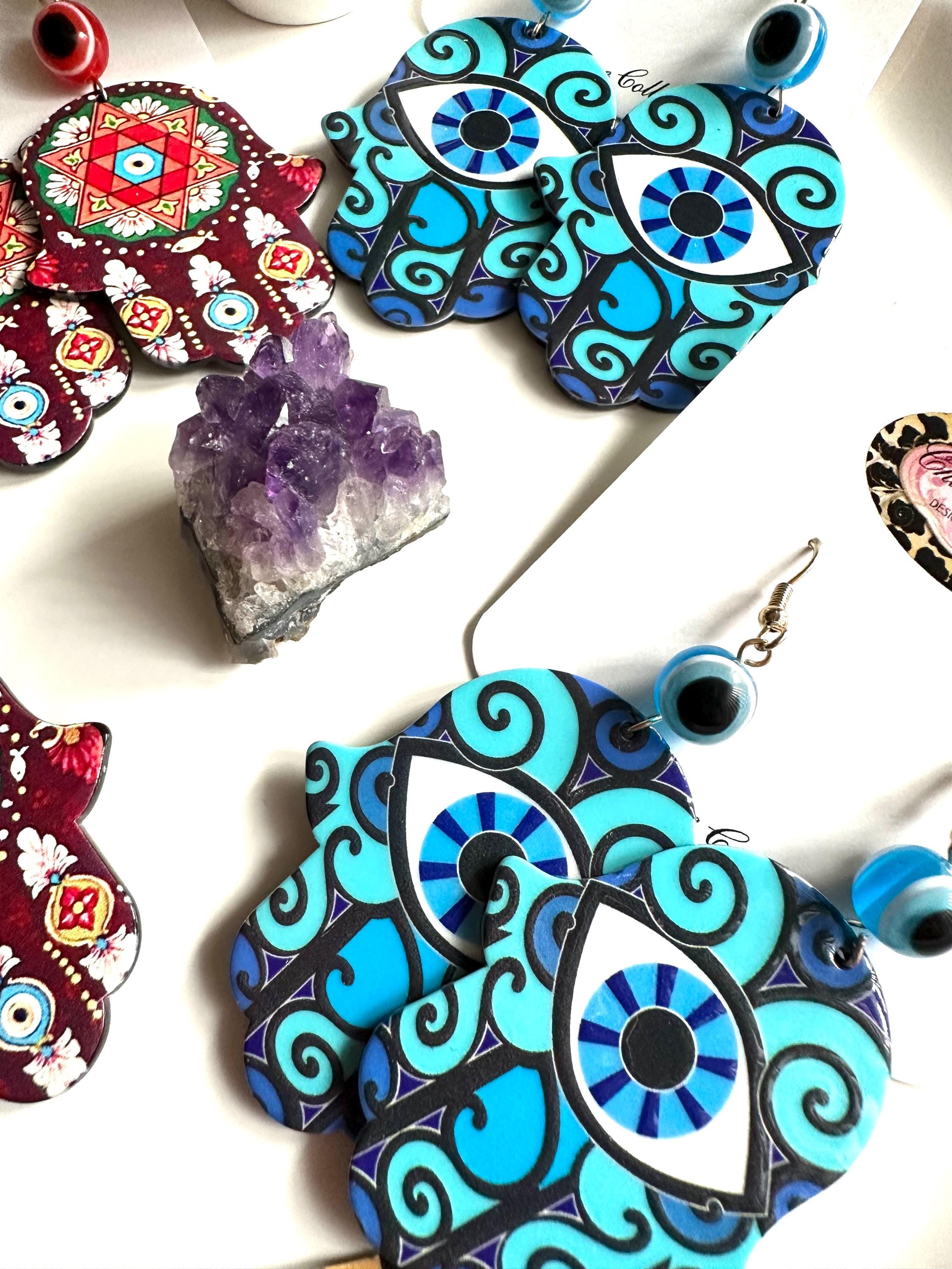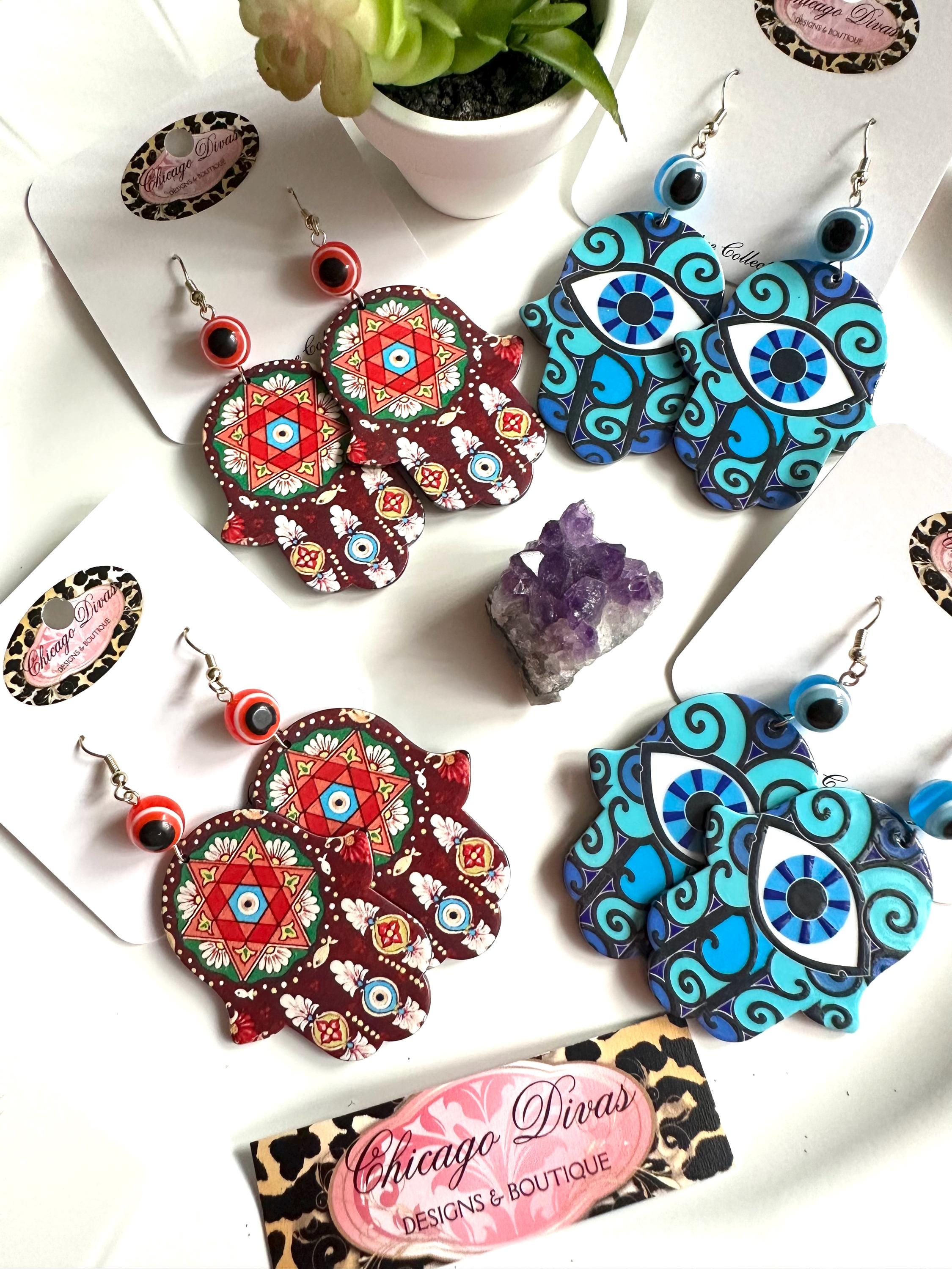 HAMSA HAND big earrings set. #4 pieces set. Protecting hand. Evil eye protection. Keep bad energy away. Double sided. New beginnings