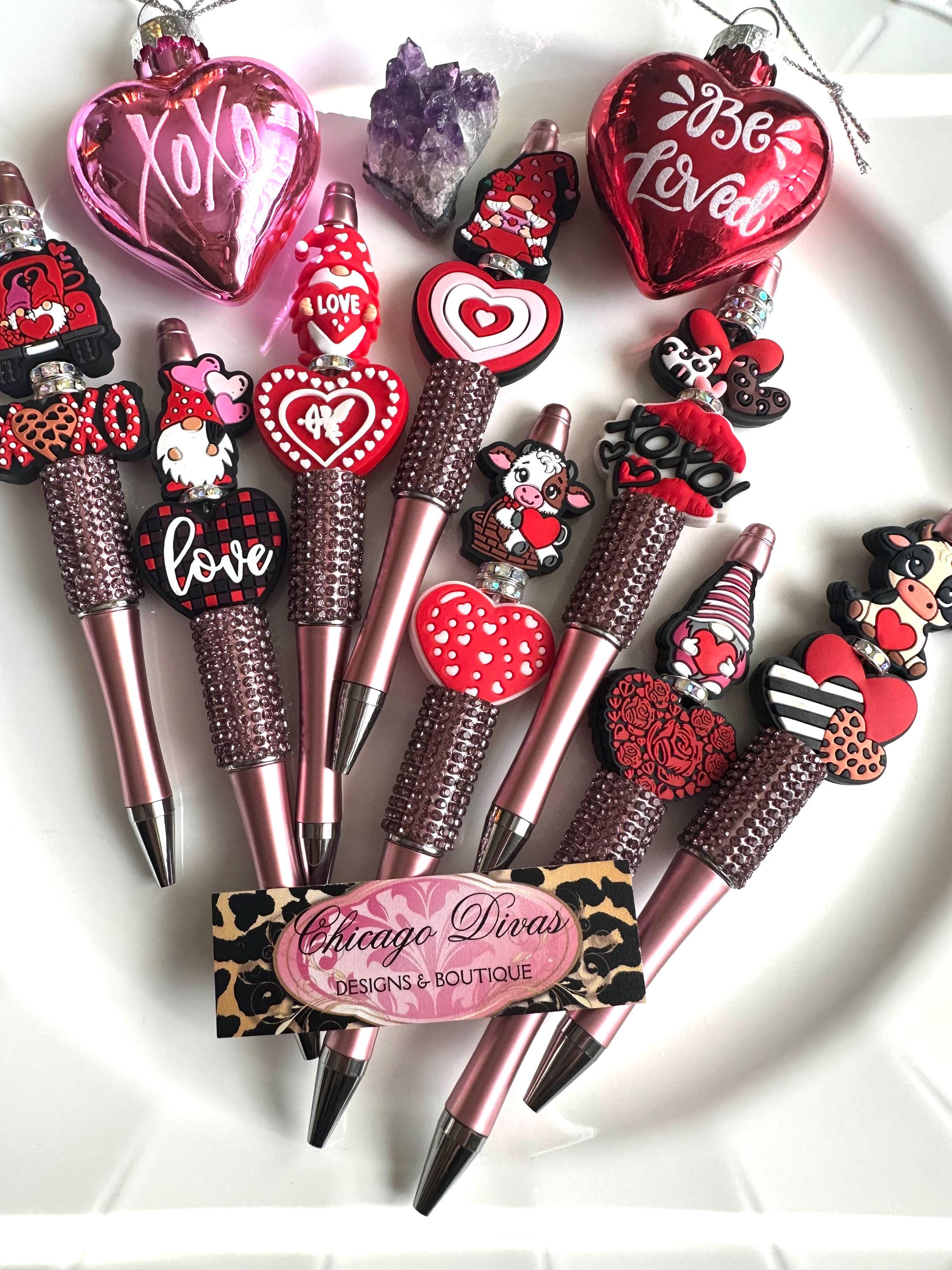 WHOLESALE VALENTINES PENS. Beaded pens. #8 pieces set. Valentines gifts. Office. Party. School. Classroom. Moms club. Bff. Sorority. Love.
