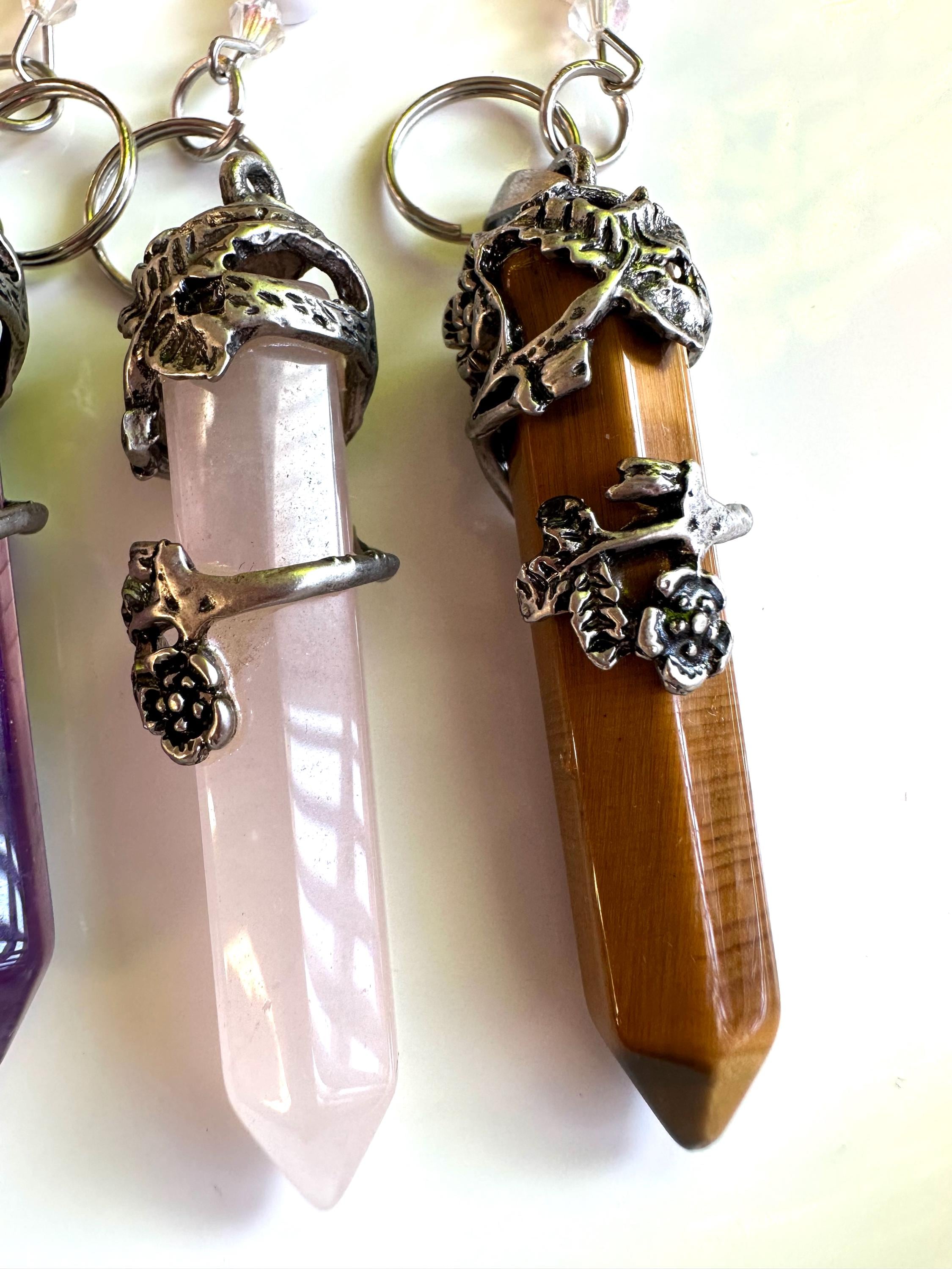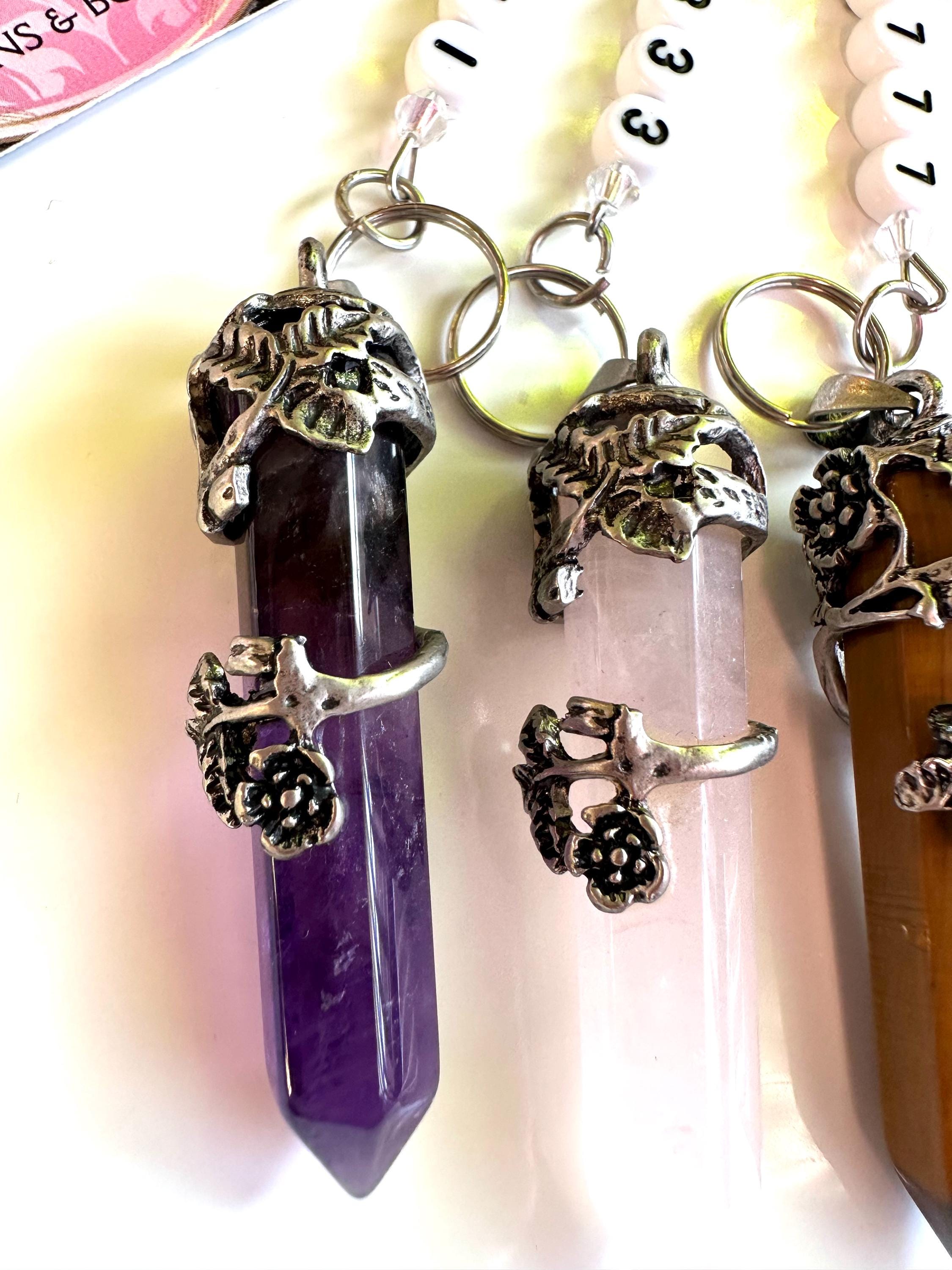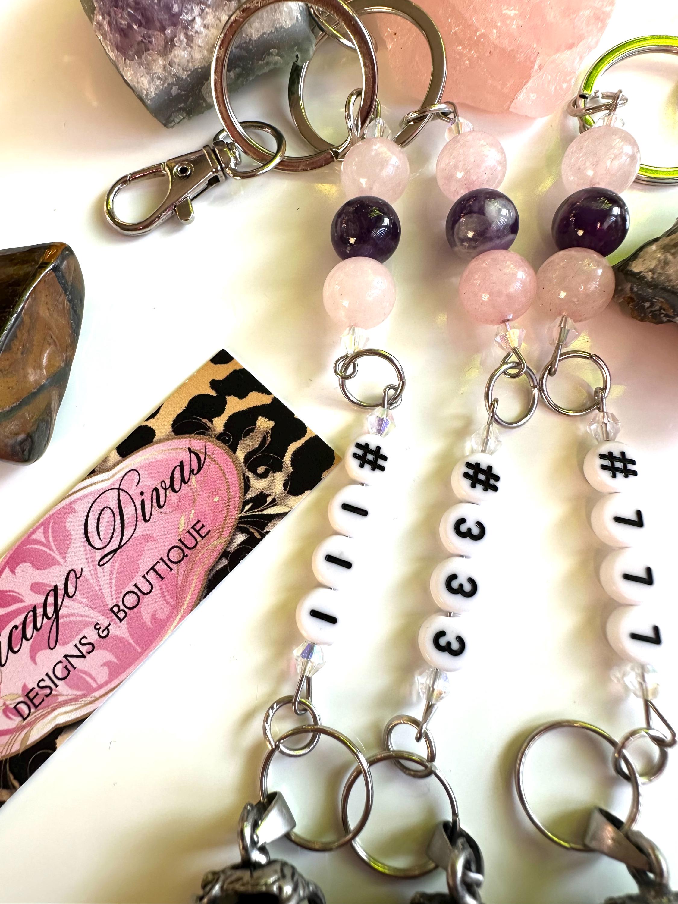 ANGEL NUMBERS keychains set. #3 pieces set. 111 333 777 new beginnings, car charms. Spiritual meaning. Rosequartz. Amethyst. Tigers Eye